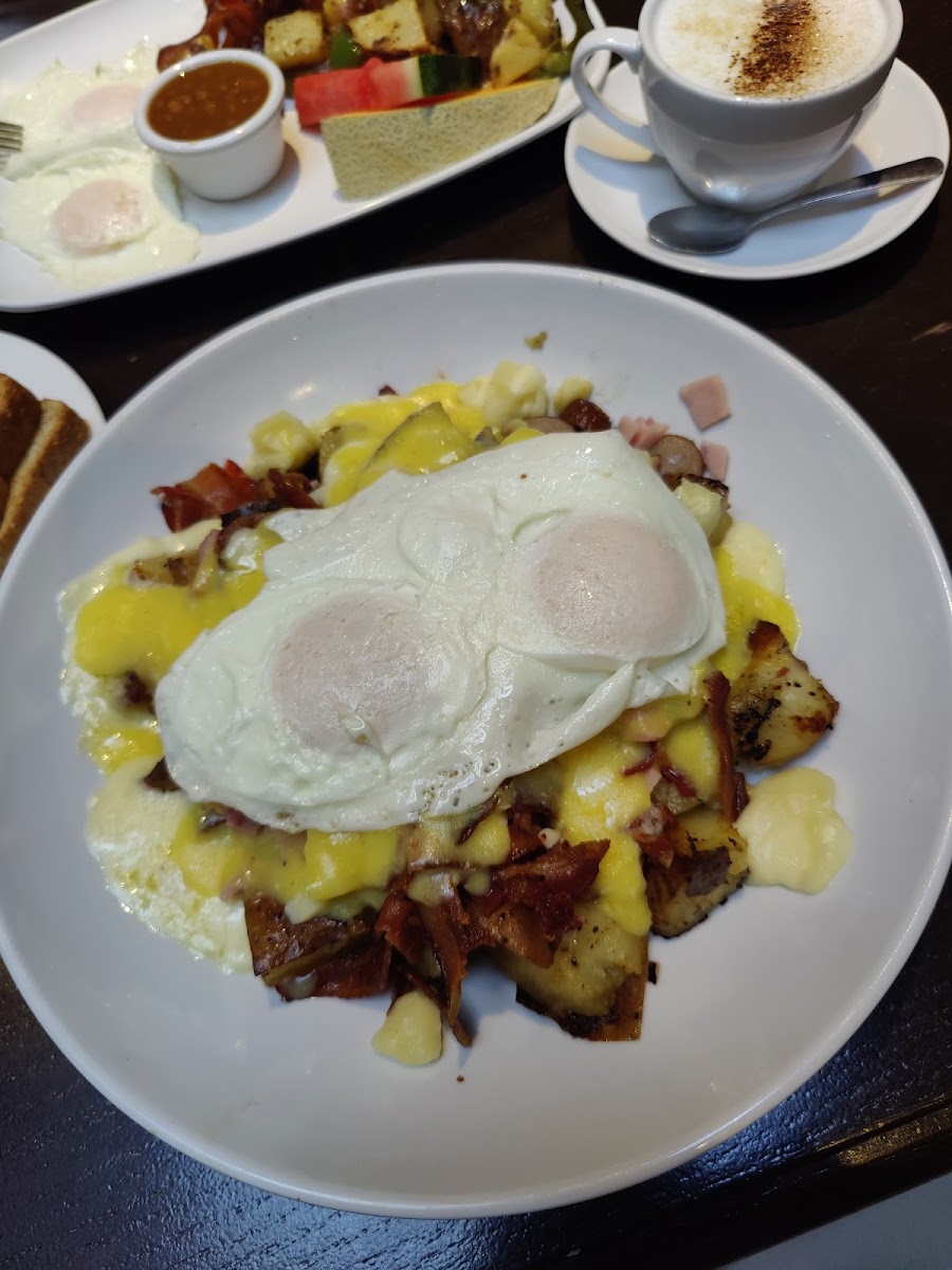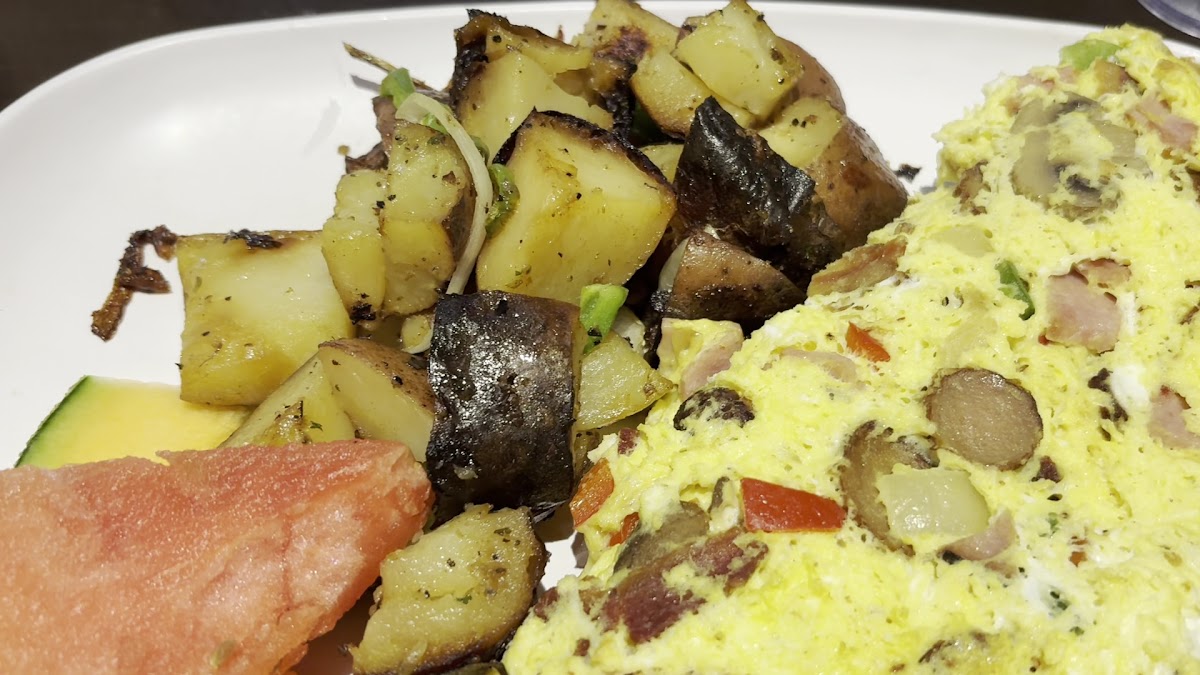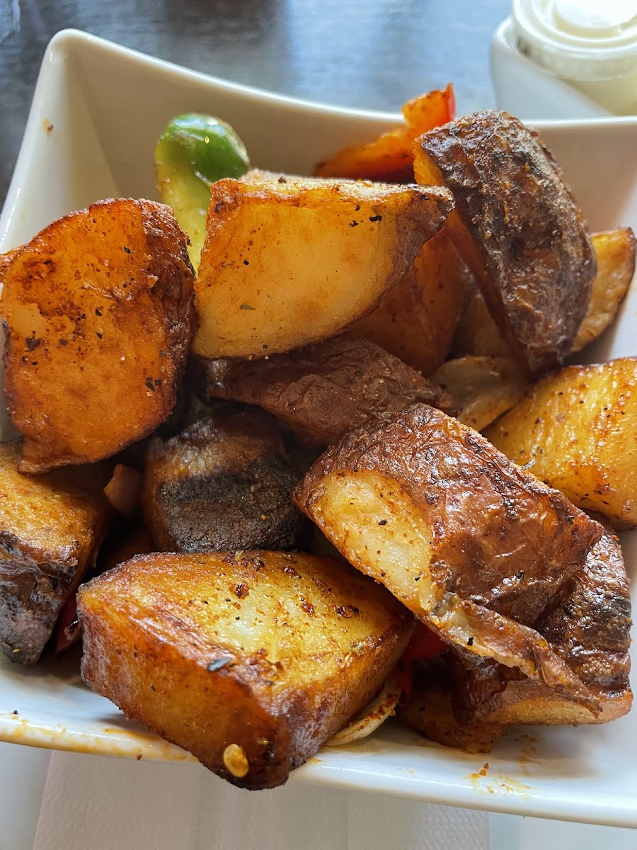 Potatoes we're refreshing and unique. They are well seasoned with some nice onions and peppers. Delicious potatoes and different from any other brunch restaurants. I took the sandwich déjeuner in a croissant and it was excellent. Bacon was just enough crispy and not too fat. Will come again for sure