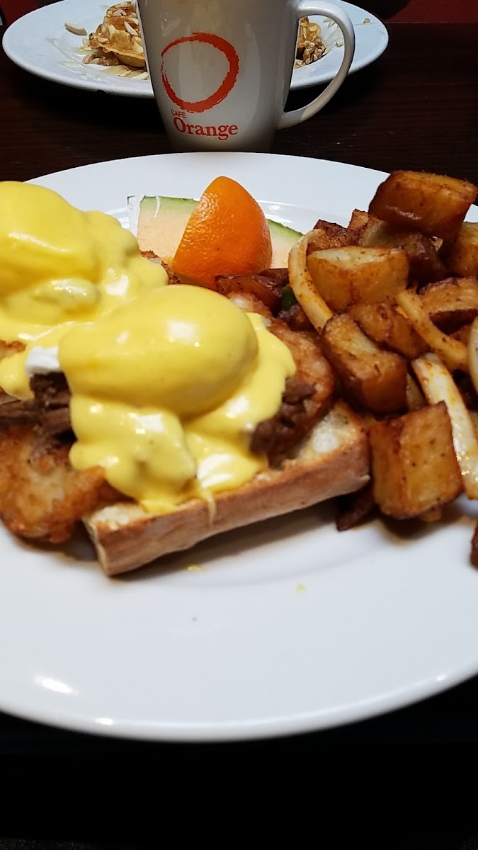 Orange is possibly the best value for breakfast, brunch and lunch in the city (I've never been for dinner). The prices are reasonable, or as reasonable as possible these days, the food is delicious and the potions are extremely generous. For example, HUGE omelettes come with fruit, potato, bread & coffee... it's a significant amount of food for an average price of $18.95. You walk out feeling satisfied and not cheated, like at many other places these days. Service is great, very friendly staff and always happy to accommodate the customers. It's very conveniently located with parking all around. It's worth going!